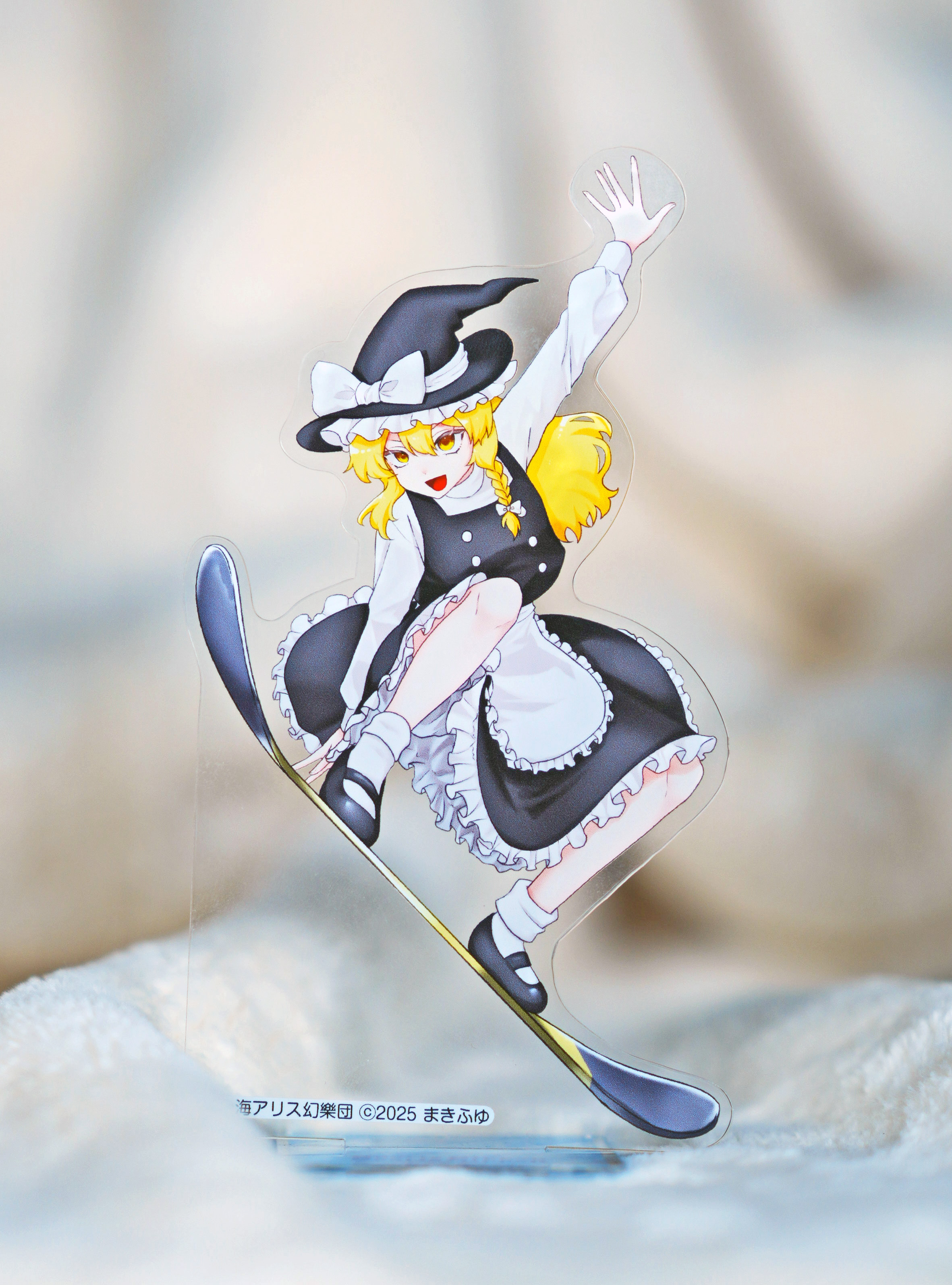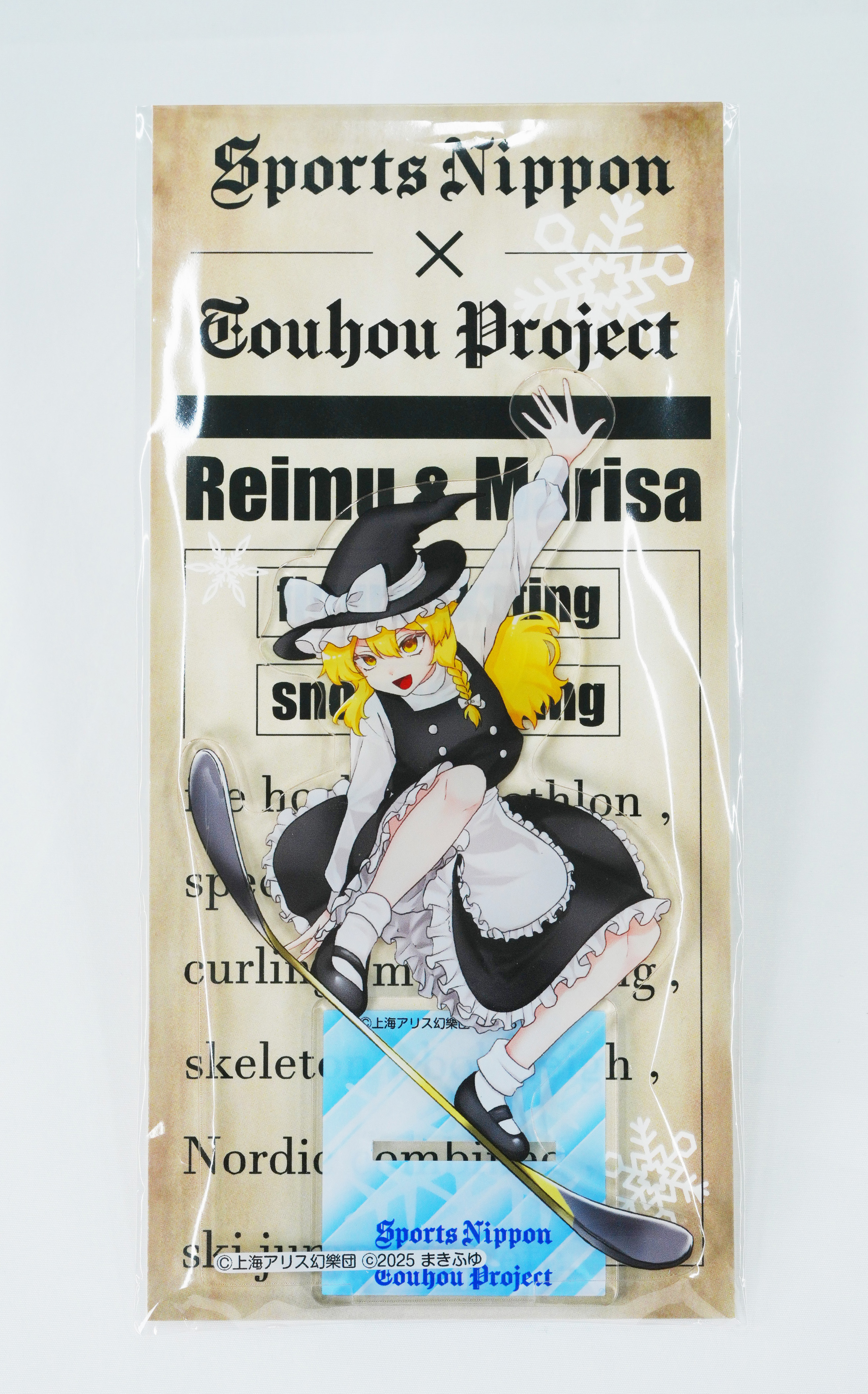 スポニチと東方Projectがタッグ。霧雨魔理沙がスノーボードで華麗に舞うアクリルスタンドです。 (素材:アクリル サイズ:H153mm×W86mm) イラスト:まきふゆ ⓒ上海アリス幻樂団 ※送料無料(お届けはポスト投函が基本となります) ※代金支払後の返金は不可。 ※お申し込みから2週間以内に入金がない場合はキャンセル扱いになります。