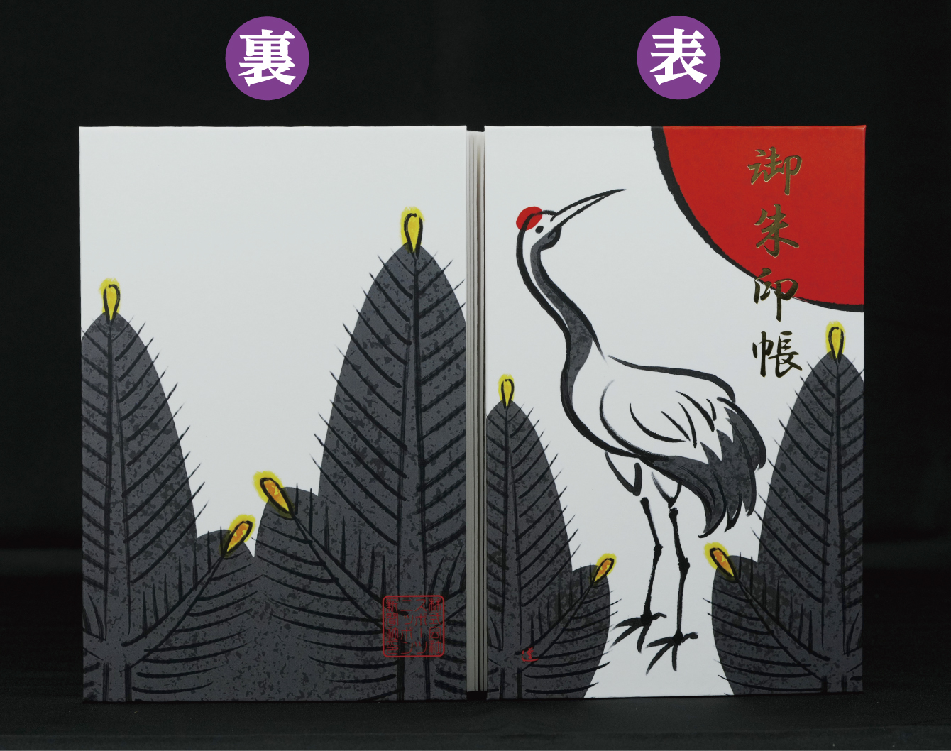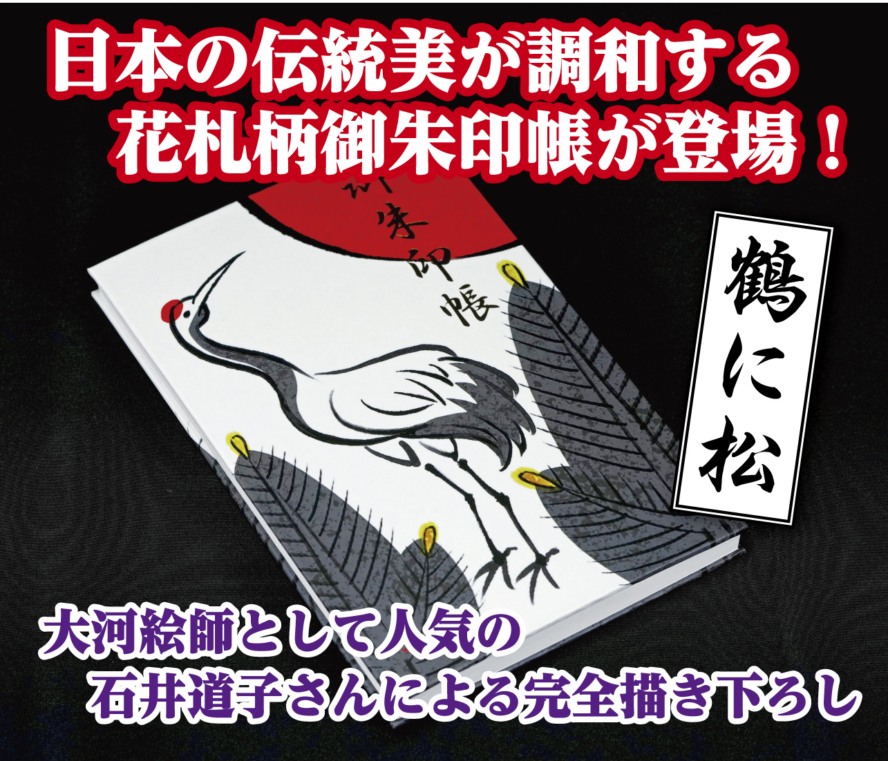 石井道子さん描き下ろし    花札柄御朱印帳「鶴に松」
